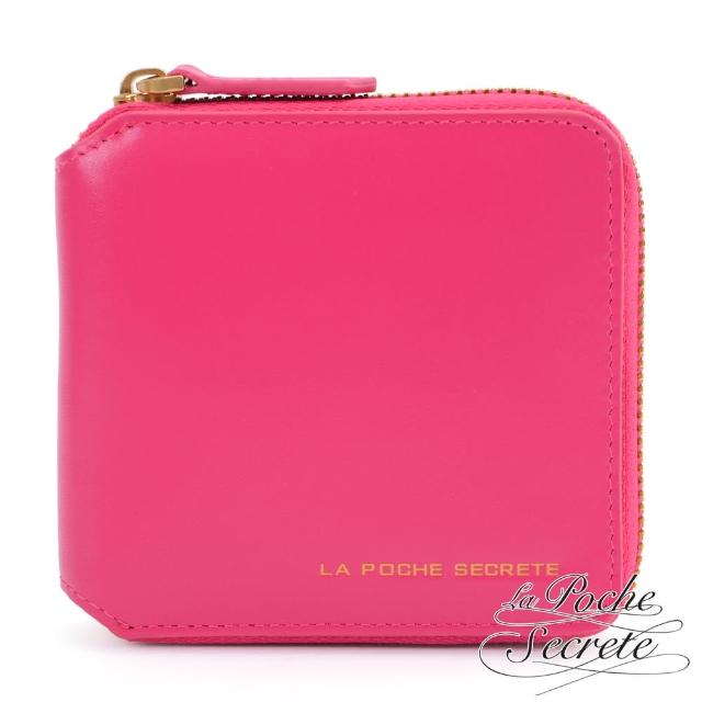 | 【La Poche Secrete】韓系簡約質感真皮實用短夾(甜美桃)
